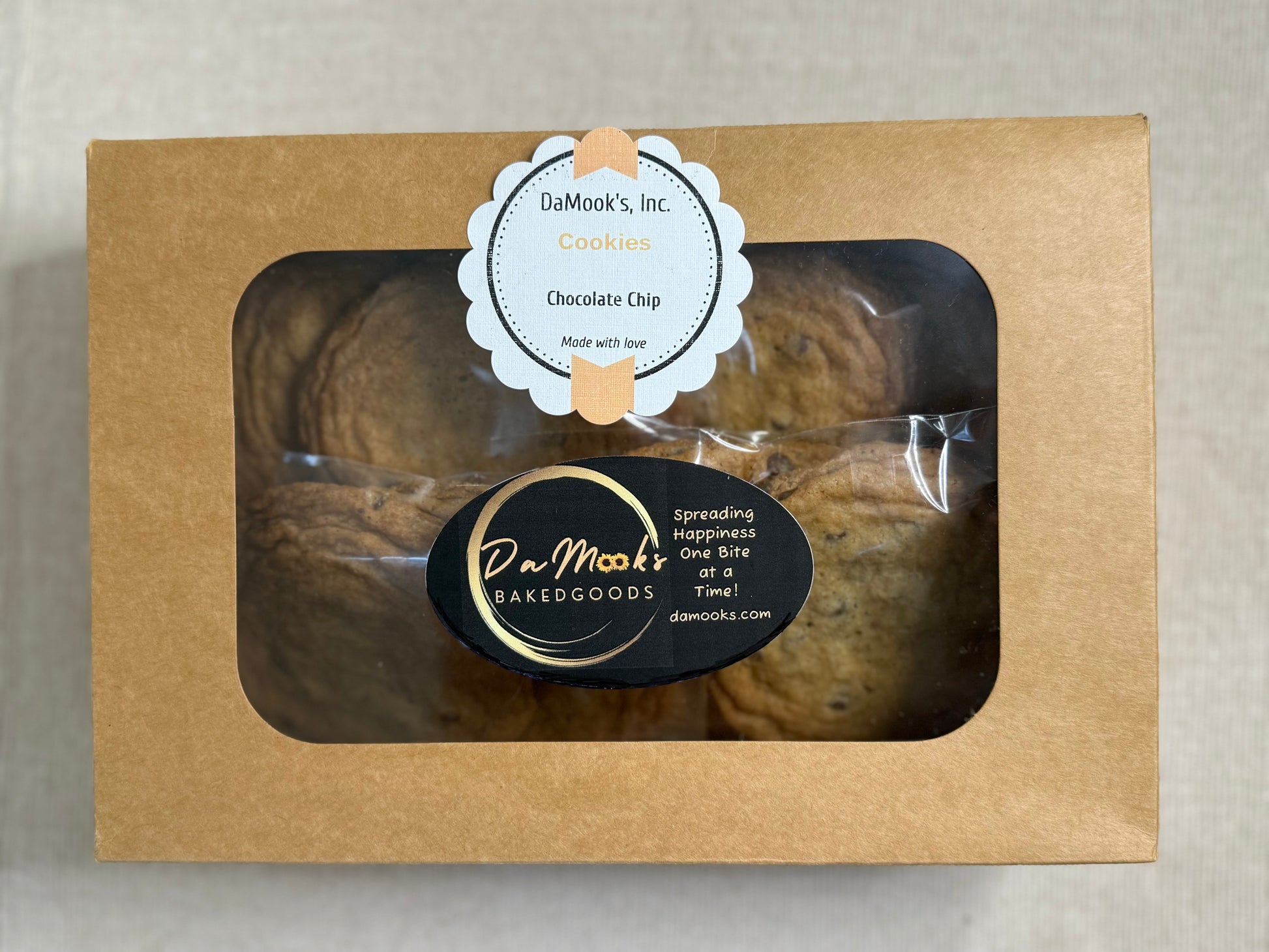 Our Chocolate Chip Cookies are a delicious golden-brown treat with a slightly crisp edge and a soft, chewy center. The cookie is generously studded with semi-sweet chocolate chips that melt into gooey perfection, creating a delightful contrast with the buttery, vanilla-flavored dough. When bitten into, the cookie combines the rich creaminess of chocolate with a subtle hint of vanilla and a touch of saltiness, offering a comforting and satisfying experience with every bite.